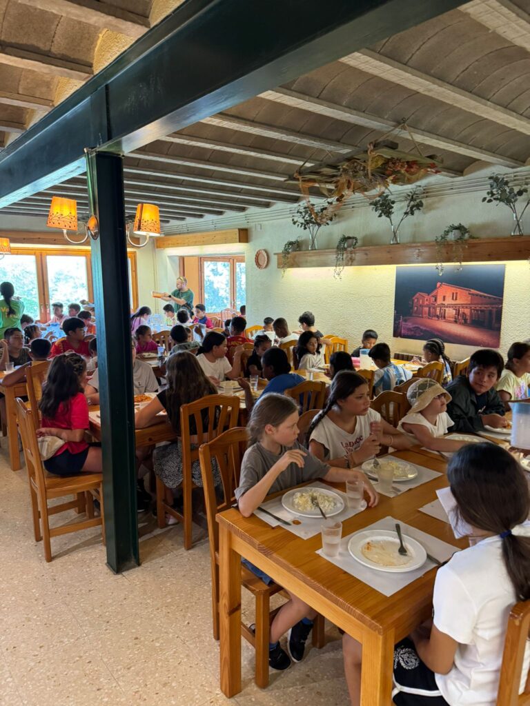 - La jornada inició con la llegada de todos los niños y niñas a la casa de colonias. Primero desayunamos y después nos dedicamos a instalarnos y repartirnos por las habitaciones. Este primer momento sirvió para que todos empezaran a familiarizarse con el entorno y con los otros niños y niñas que asistían por primera vez.